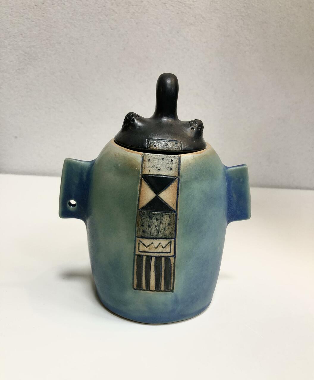 Käsitsi modelleeritud ja maalitud keraamiline kaanega nõu MESILANE