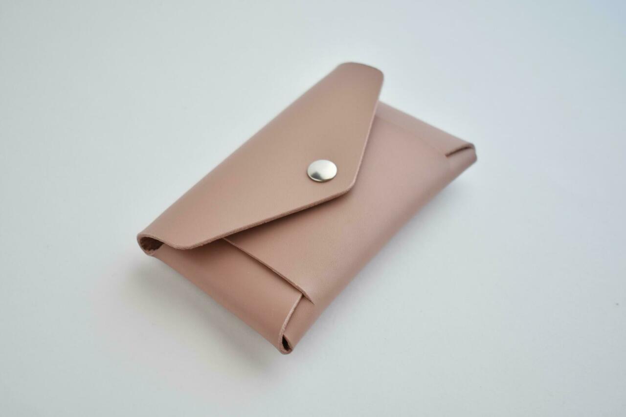 Elegantne õmblusteta kaarditasku roosakat beeži värvi kroompargitud nahast.