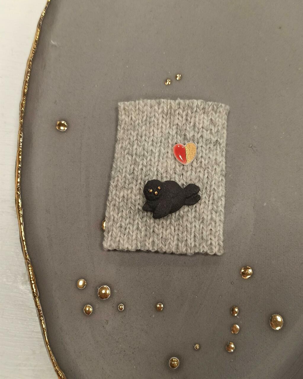 Mustast portselanist hüljes komplektis tillukese valgest portselanist glasuuritud südamega.