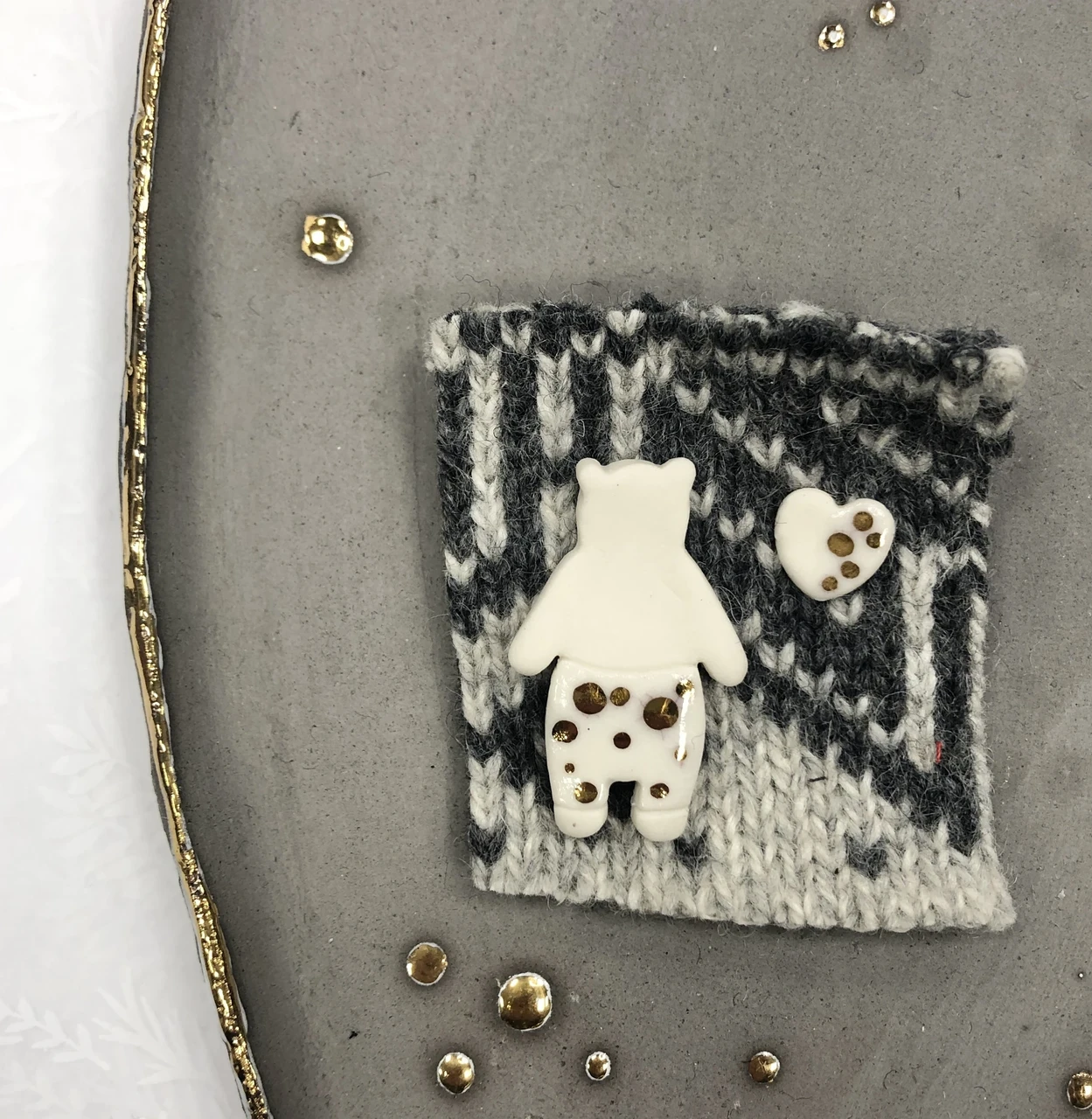 Valgest portselanist karupross, komplektis väikese südamega. Kaunistatud ehtsa kullaga.