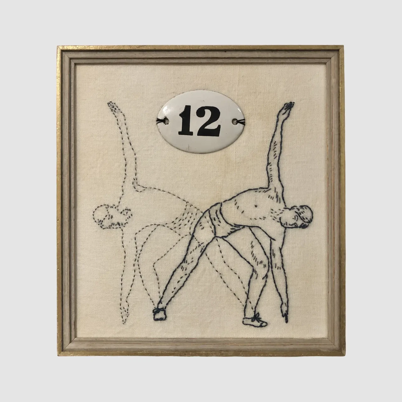 Tikand, taimedega värvitud puuvillane vintage kangas, emaileeritud metallist nr 11, vintage pildiraam