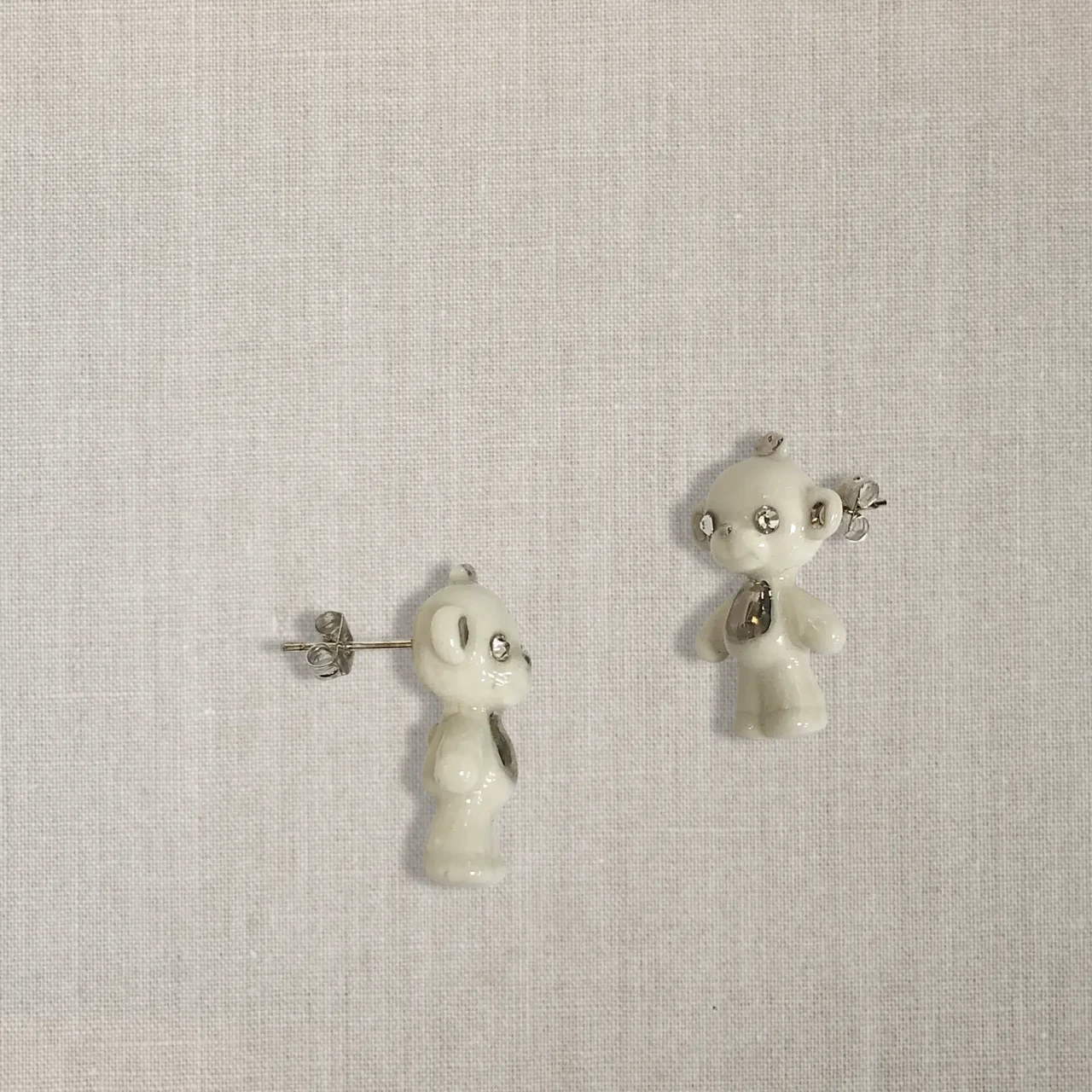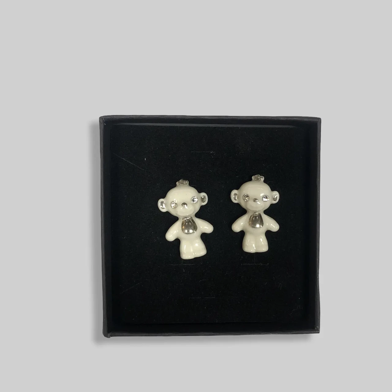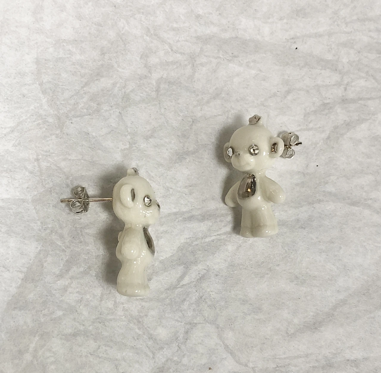 Portselanist kõrvaehted kaunistatud ehtsa hõbedaga, silmadeks Swarovski kristallid.
