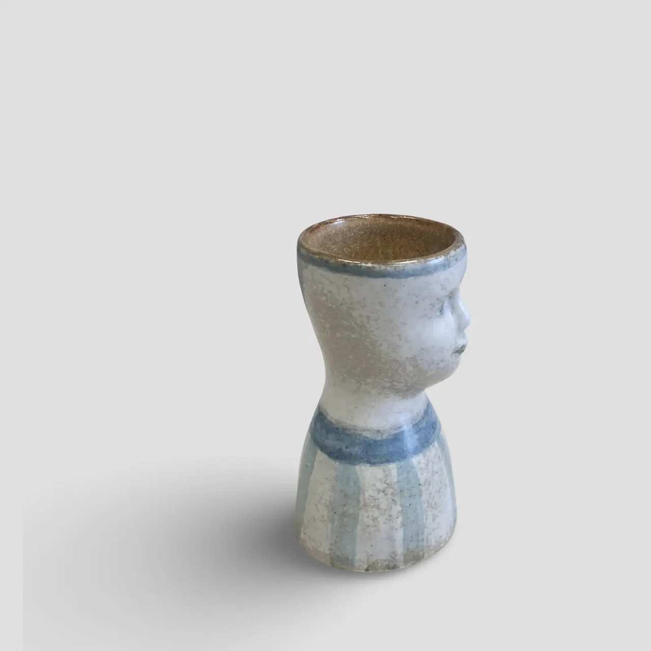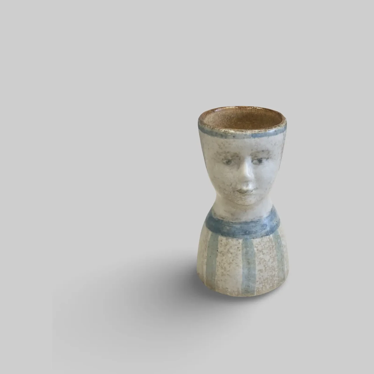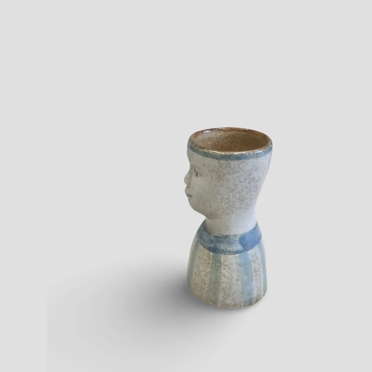Käsitööna valminud keraamiline munapeeker-vaas.