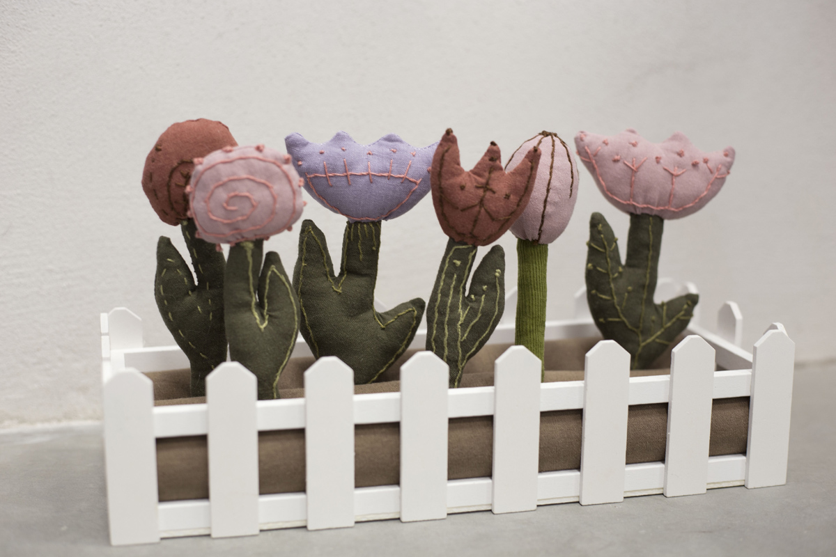 Puidust aed tekstiilist peenardega, kus saab "kasvatada" nii tekstiilist lilli kui ka köögivilju.