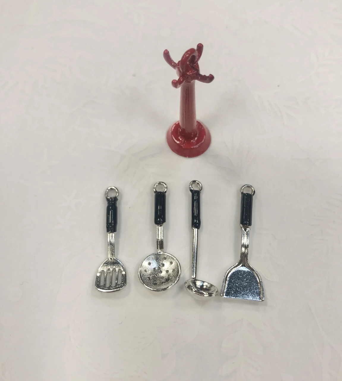 Miniatuurne köögitarvikute komplekt nuku- ja karumaja mängudeks.