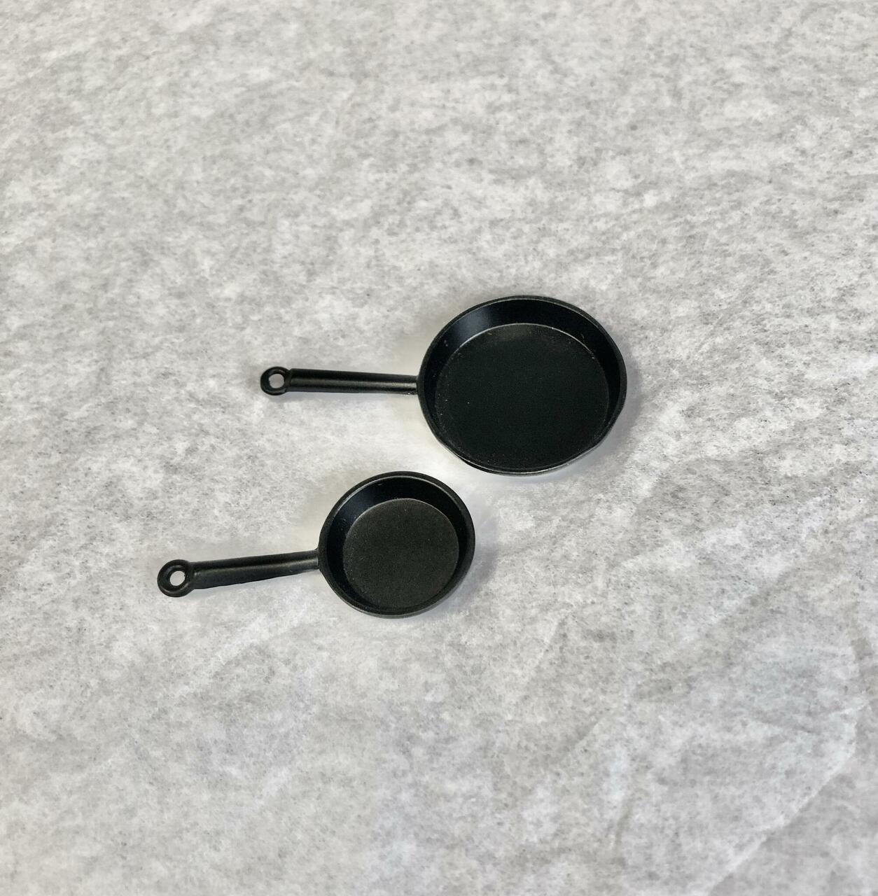 Miniatuurne metallist pann nuku- ja karumaja mängudeks 1:12 suuruses.