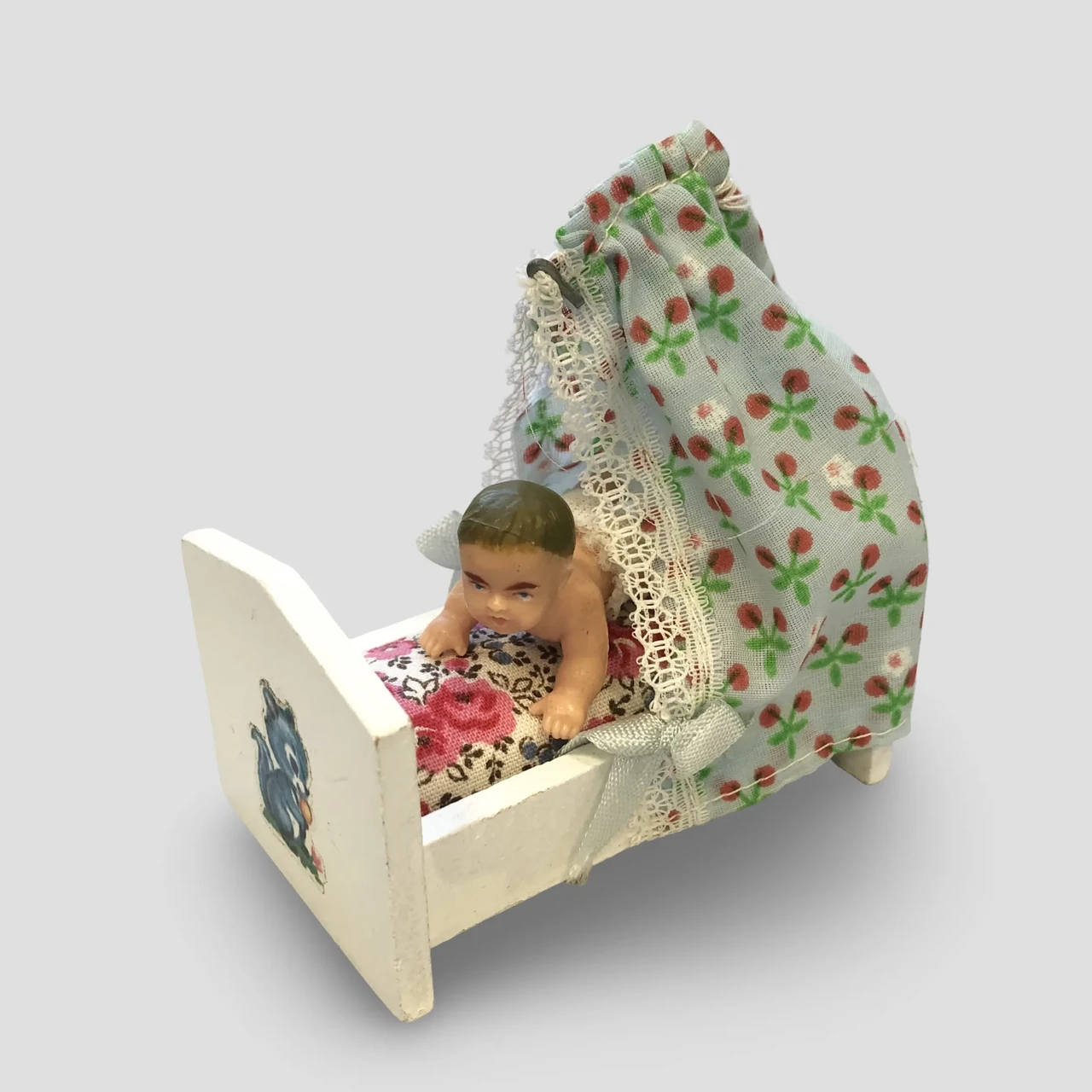 Vintage nukuvoodi koos tillukese beebinukuga 1960-70 aastatest Lundby 1:16