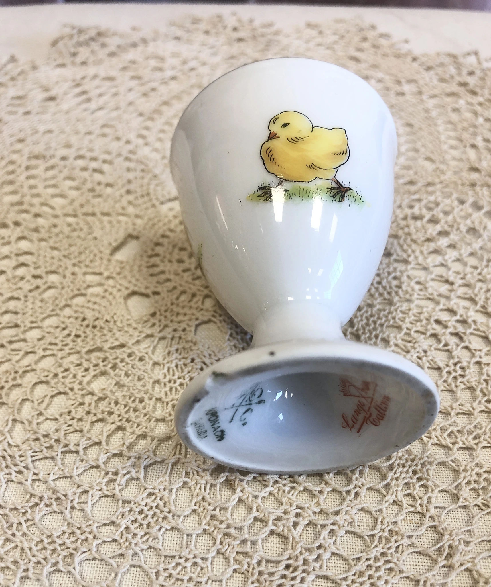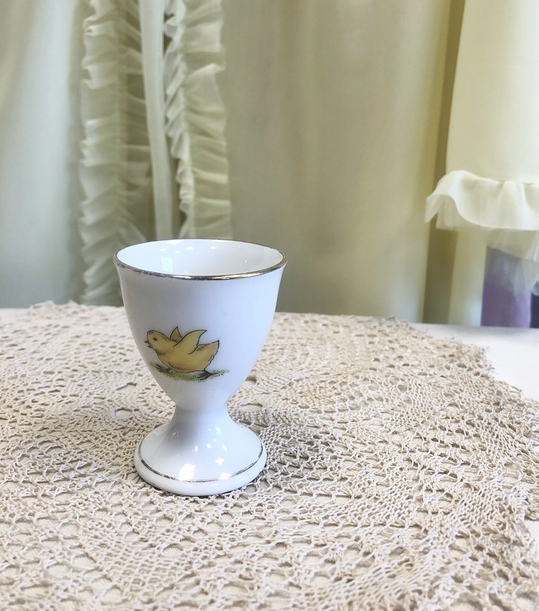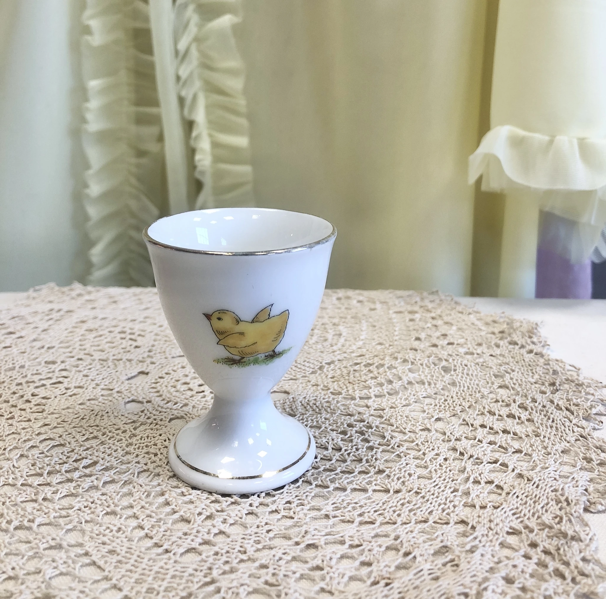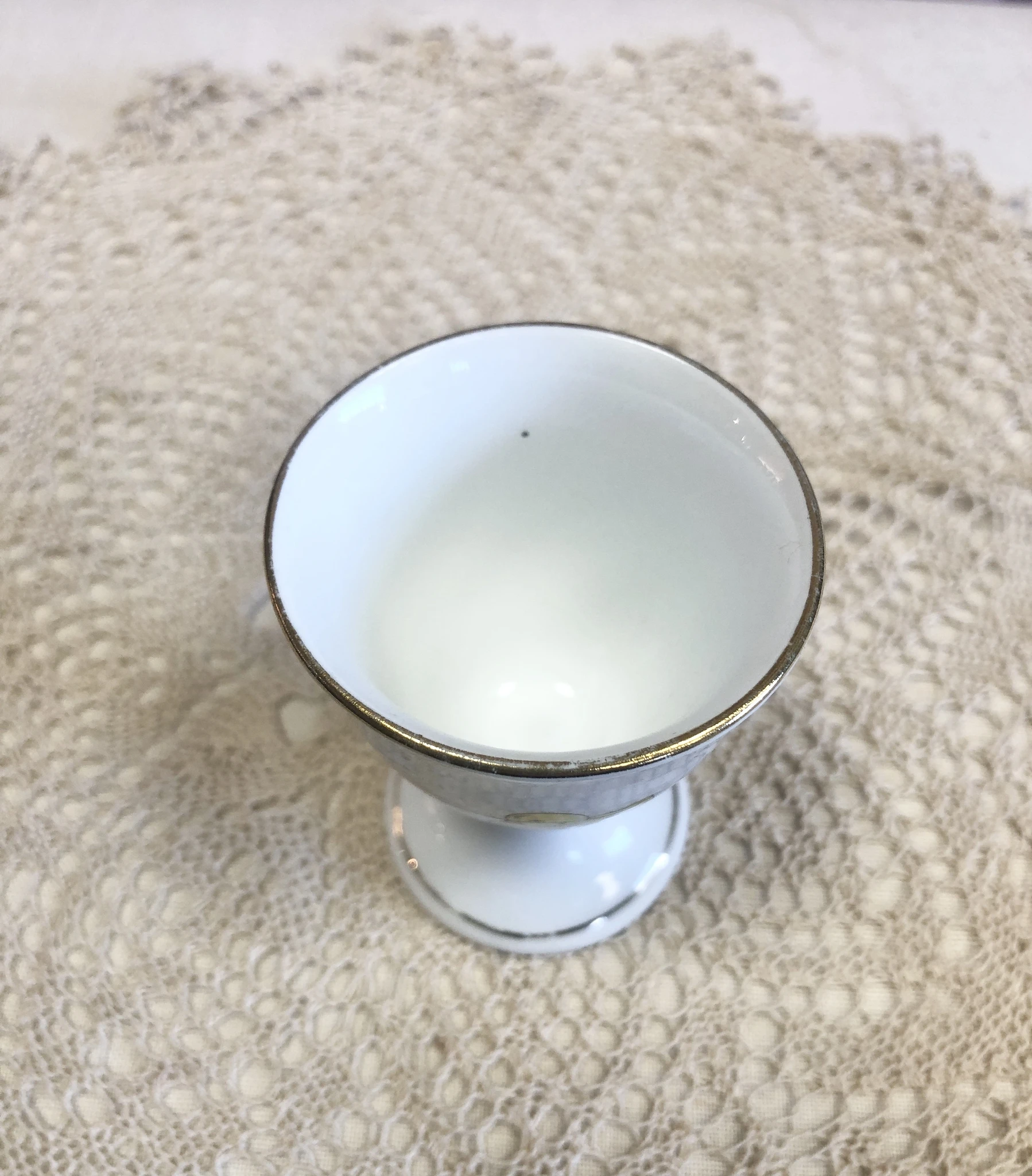 Kolme erineva tibuga, kuldäärega portselanist munapeeker.