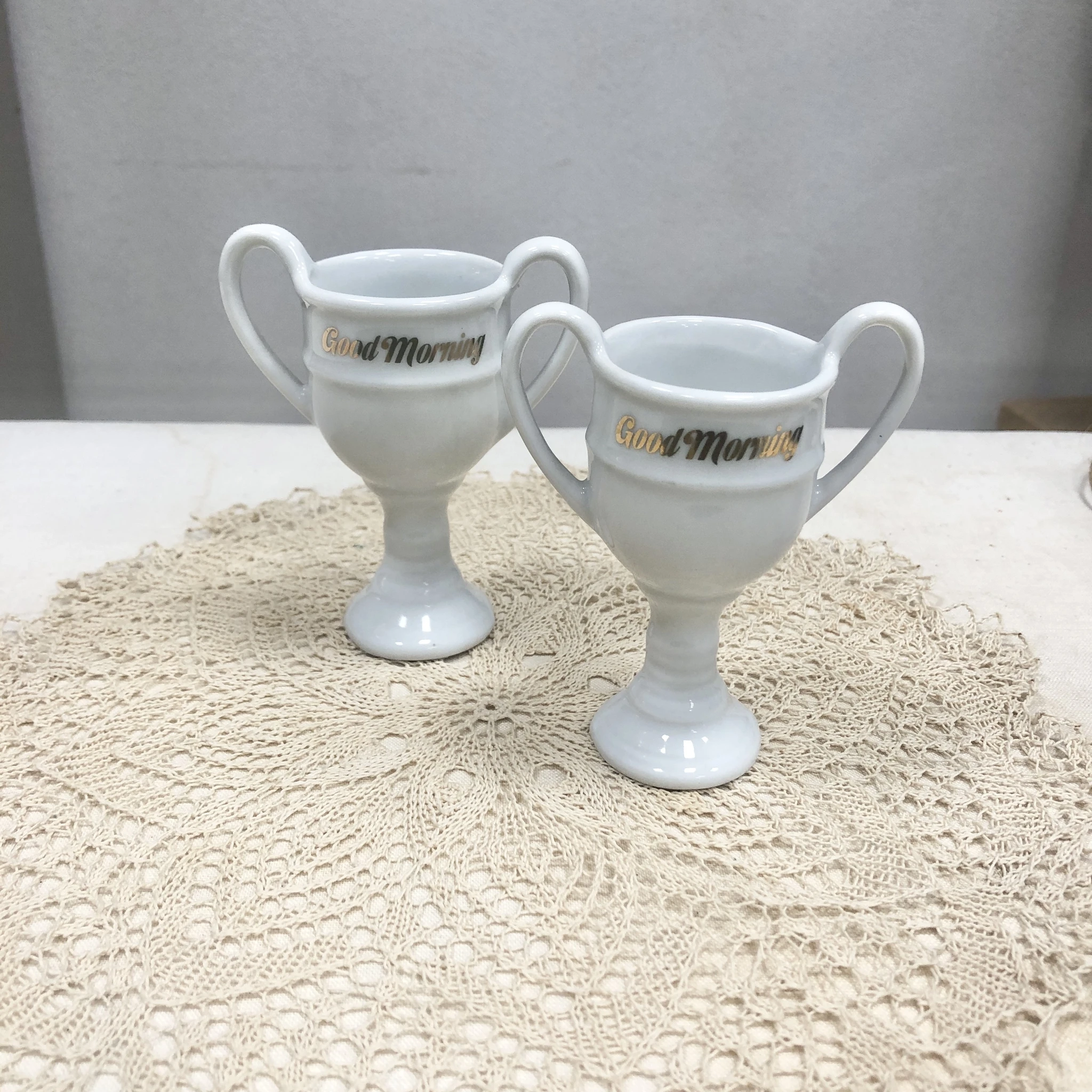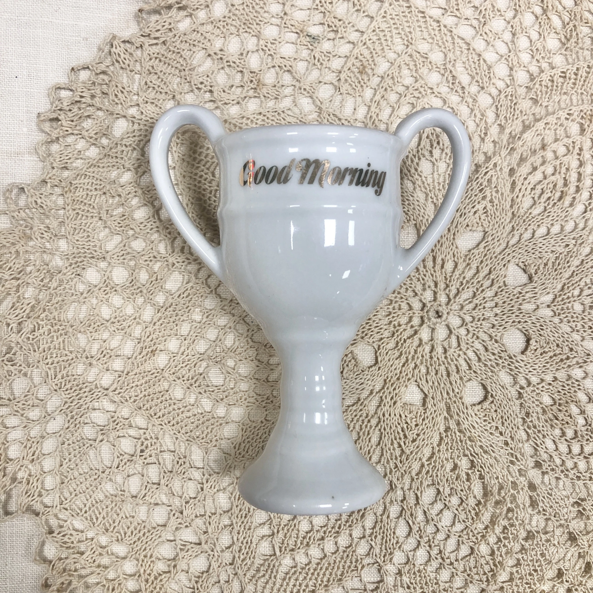 Vintage munapeeker kuldse kirjagaga “Good morning”