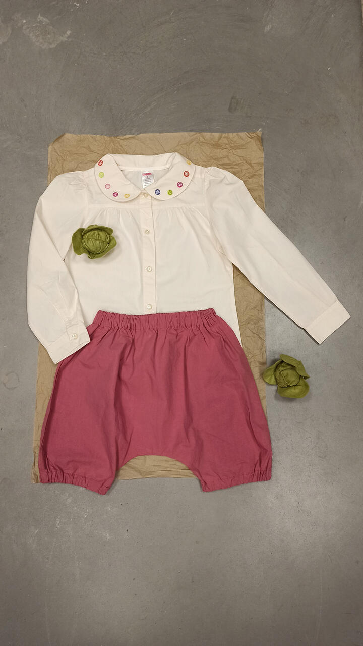 Pestud kahisevast puuvillasest tumeroosad puhvpüksid.
