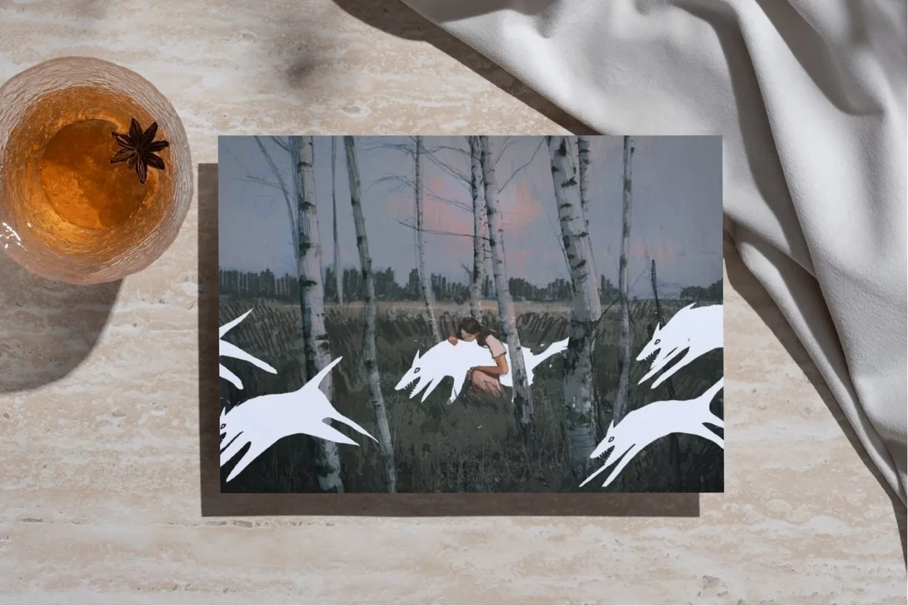 The print comes with a QR code with the music the artist listened to while the work was being created.
