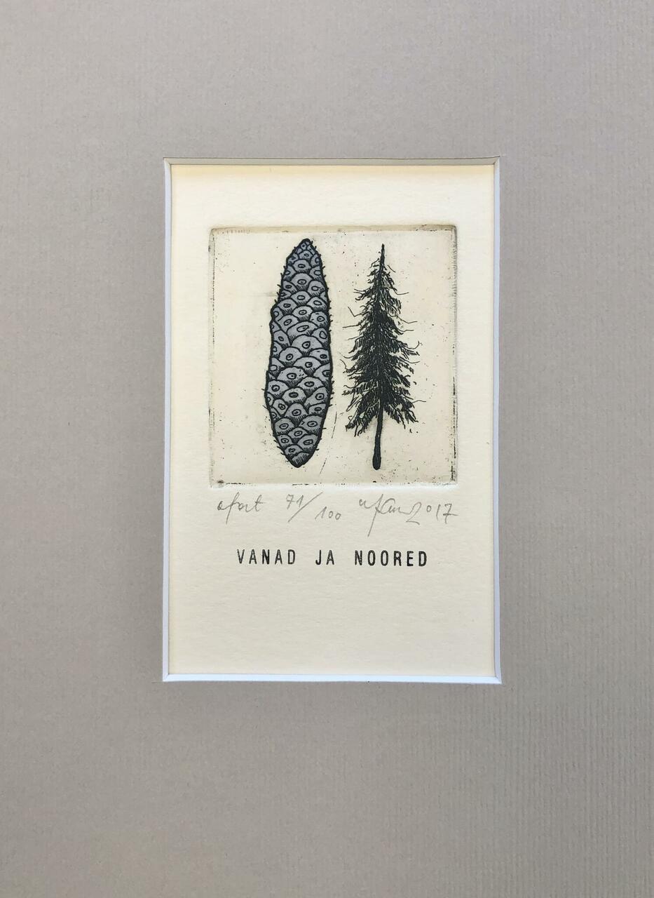In November 2021, Kadi Kurema's exhibition "Vanavanad" was held in the R gallery located in the studio shop Karud ja Pojad. "Grandparents" are illustrations to Indrek Koff's books "If I Were a Grandfather" and "If I Were a Grandmother". Many of Kadi Kurema's illustrated books have been selected as some of the most beautiful. In addition to a wide selection of graphics, several of her illustrated books are available in the studio shop.